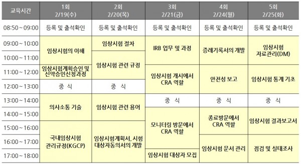▶ 교육관련 문의: 한국임상CRO협회 교육담당자 (kcroa@kcroa@kcroa.or.kr, 02-3789-3912)